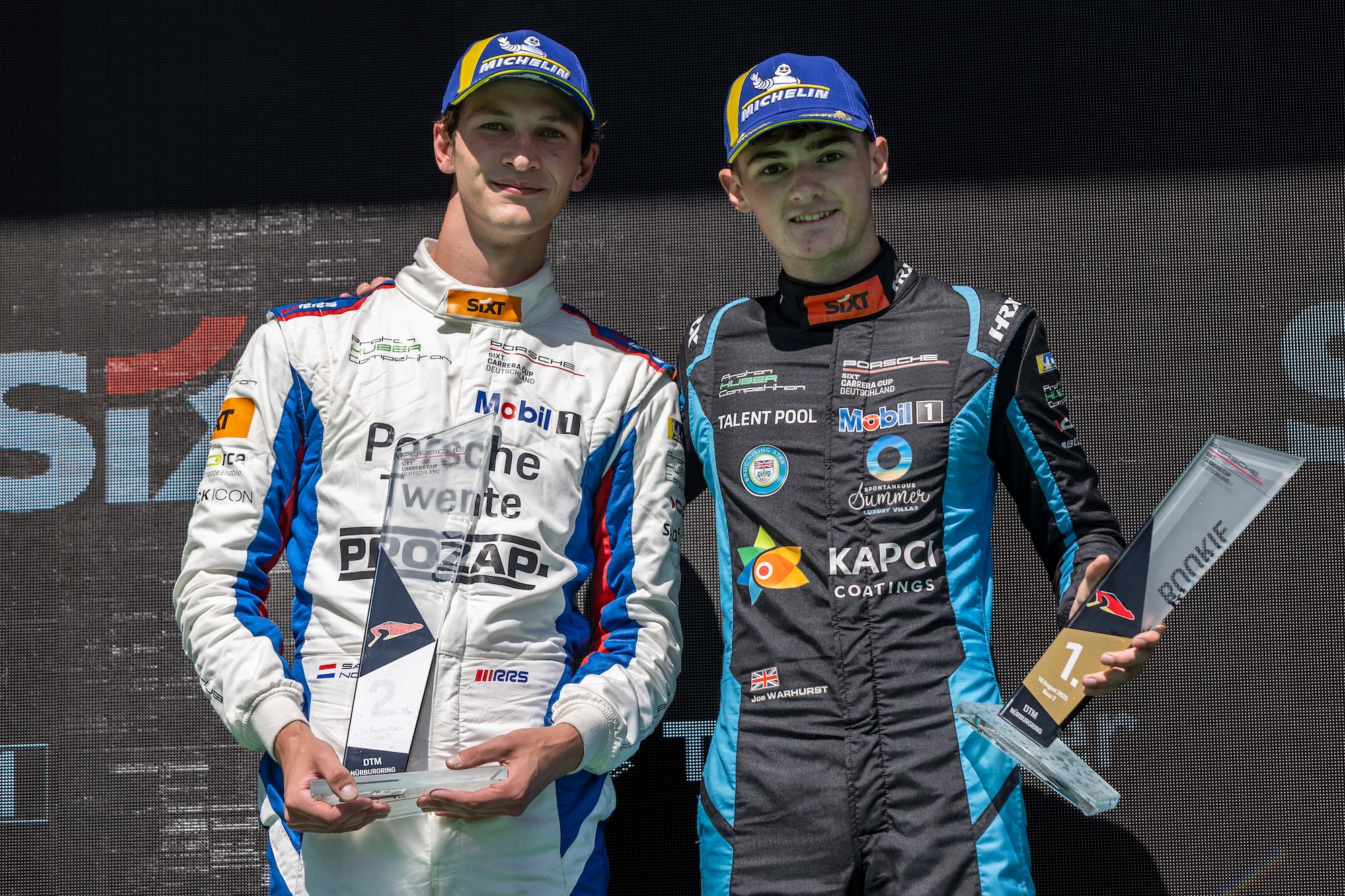 Proton Huber Competition is still in the title race after the Porsche Sixt Carrera Cup Deutschland race weekend at the Nürburgring. Double victory in the rookie classification.