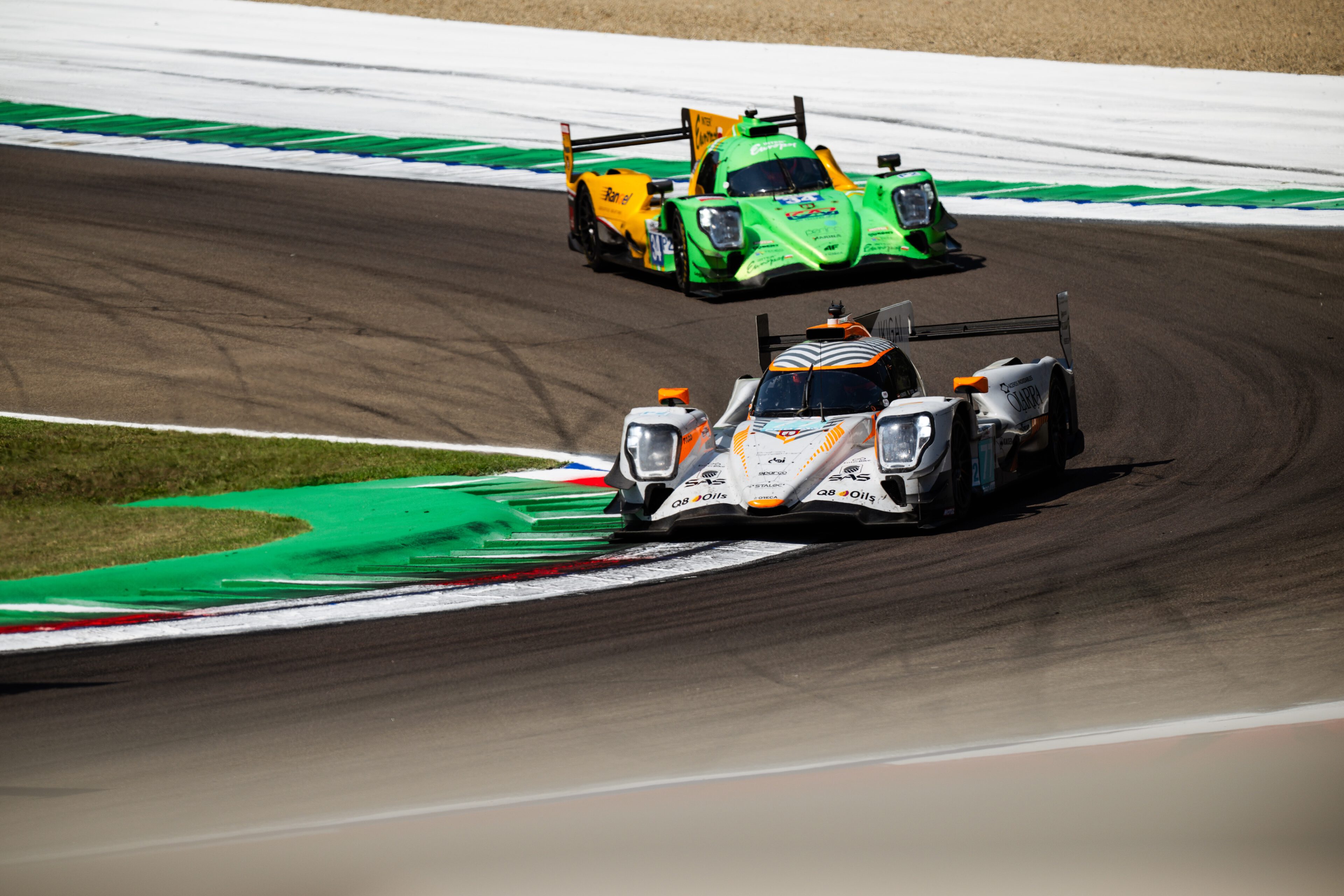 Saturday’s qualifying session offered an early sign that the #77 Oreca 07, driven by Giorgio Roda, René Binder and Bent Viscaal, would be a strong contender for LMP2 Pro/Am honours in Emilia-Romagna. Roda delivered a stunning lap in challenging conditions, securing pole position with a margin of nearly three seconds over the next-fastest car.